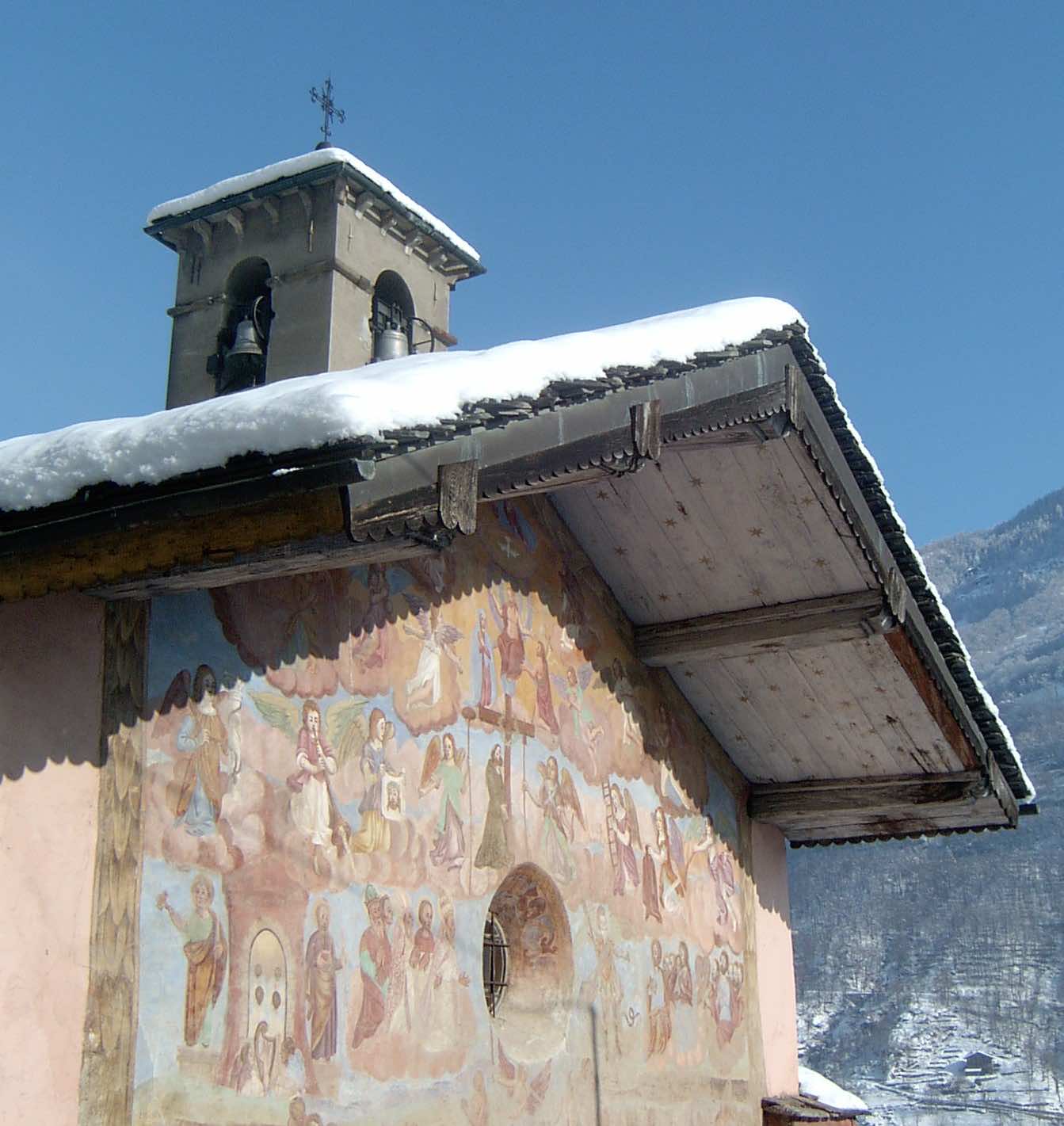 The main facade is frescoed with a painting depicting the Last Judgment dating back to 1676.